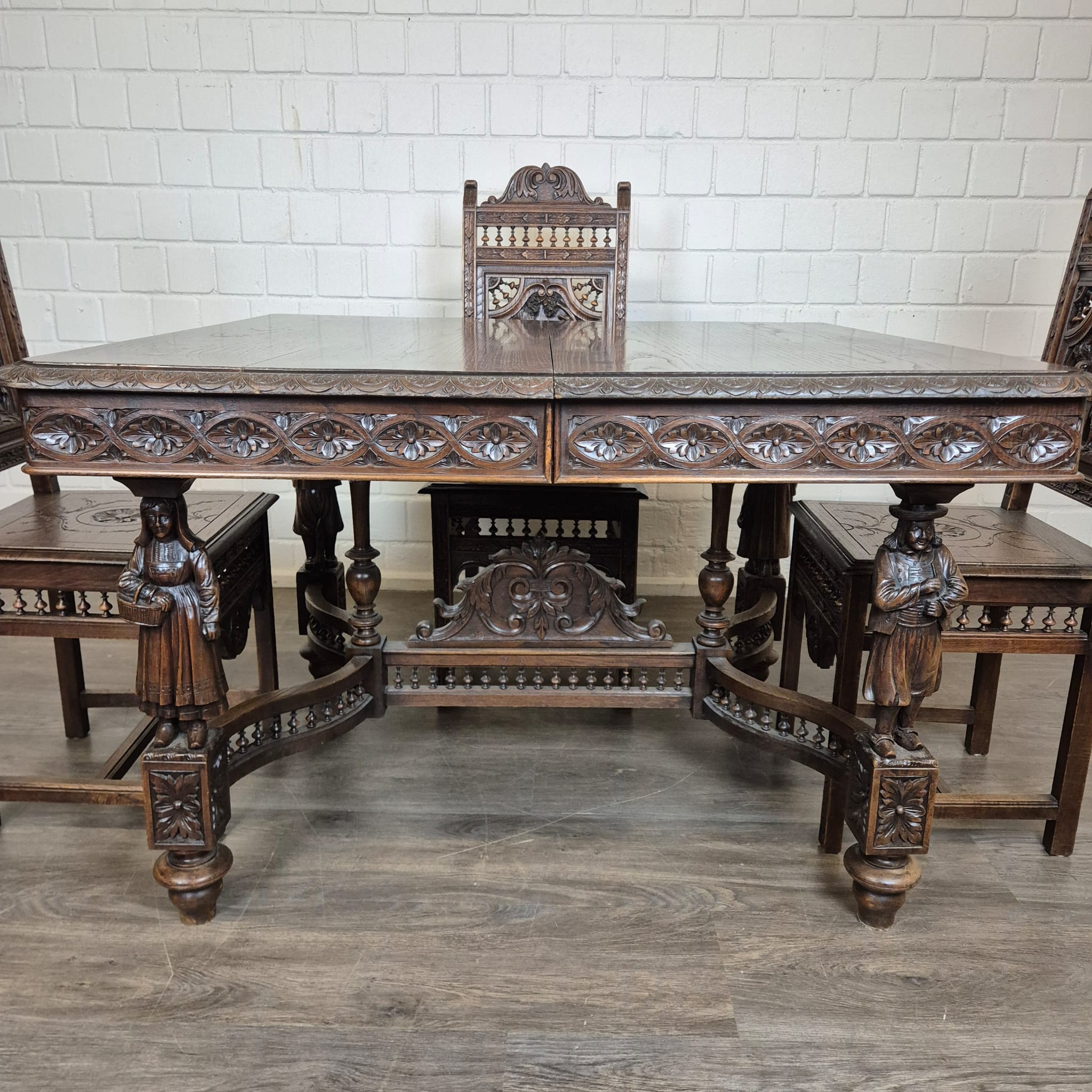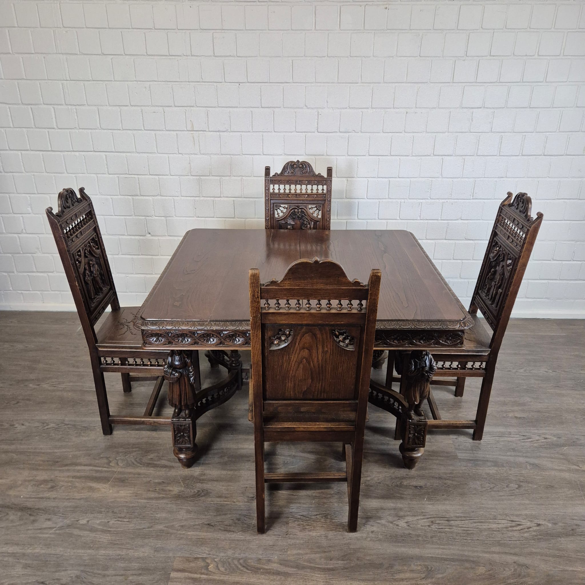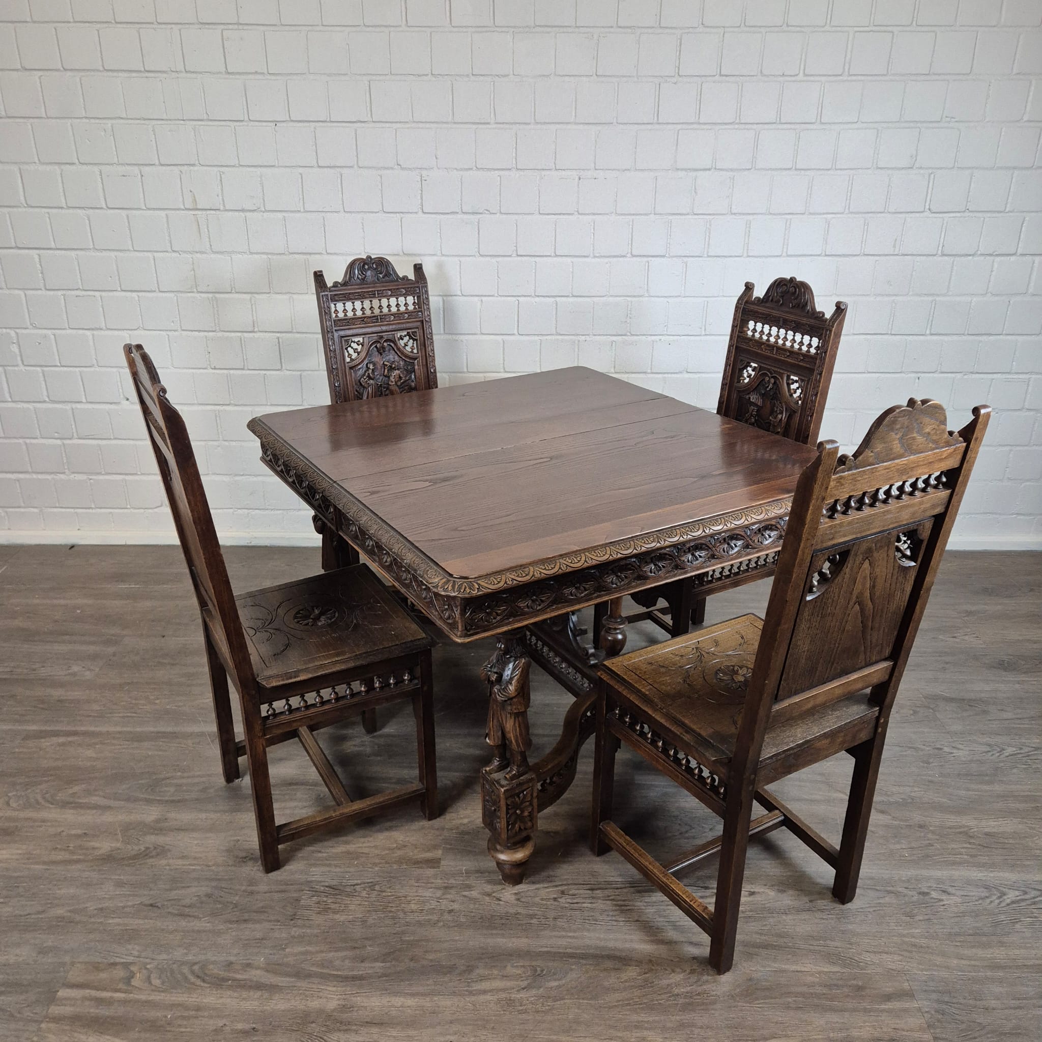 Gründerzeit Dining Table with 4 Chairs 1880 Oak