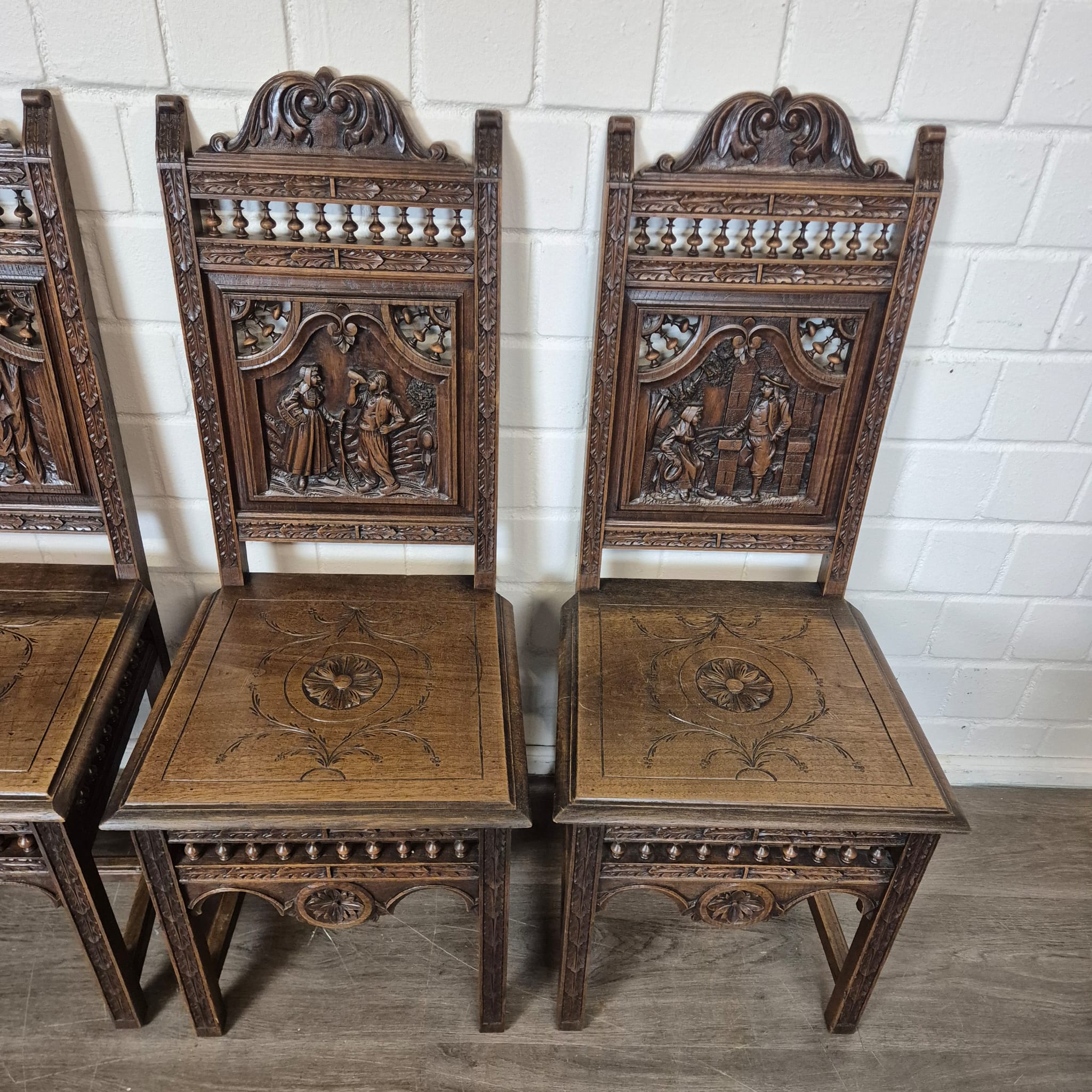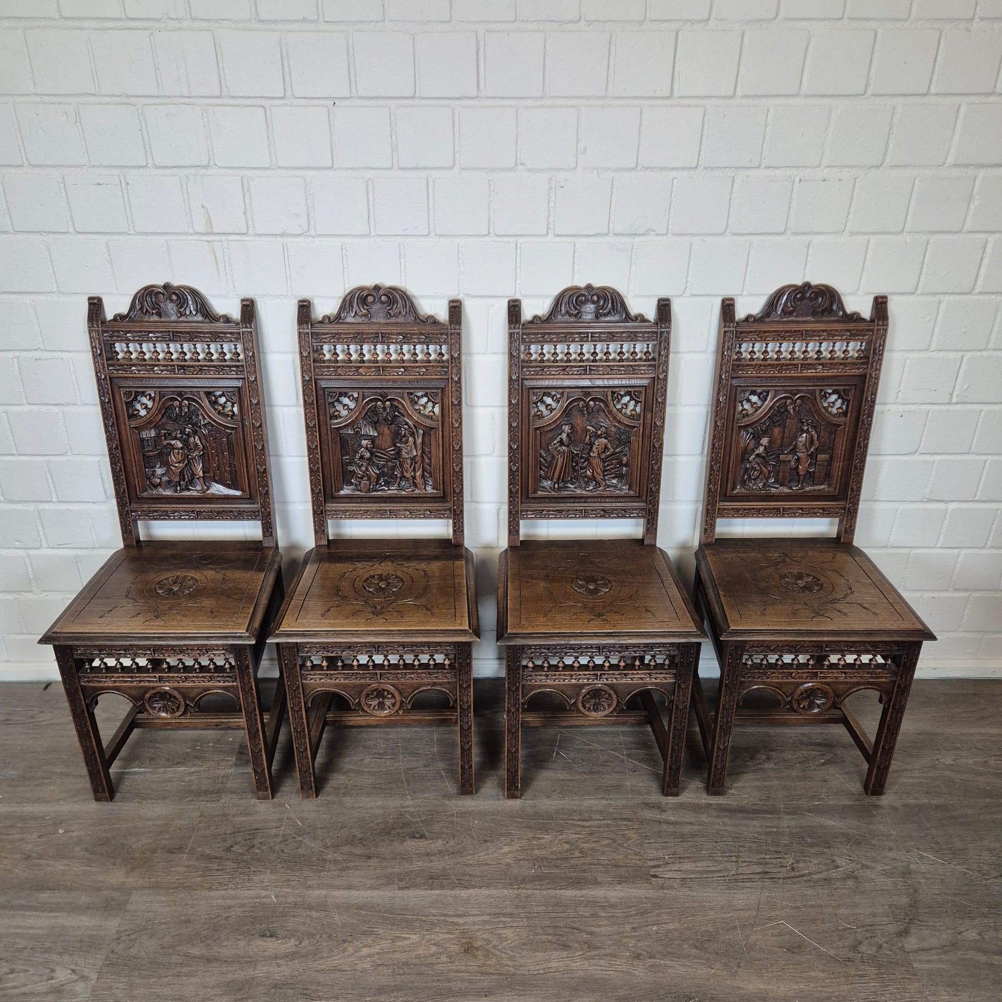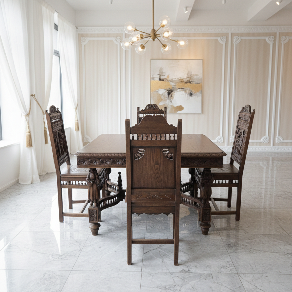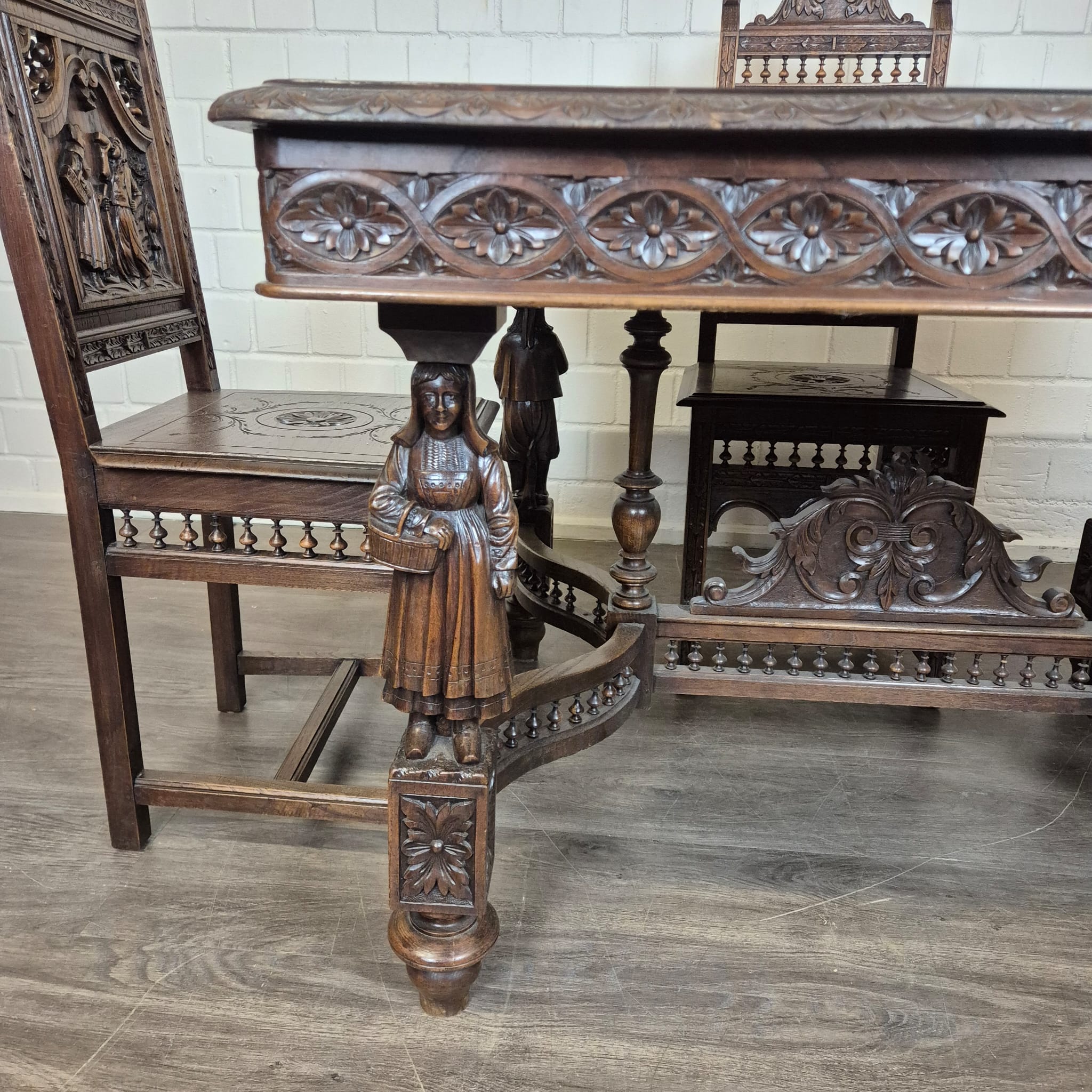 Gründerzeit Dining Table with 4 Chairs 1880 Oak