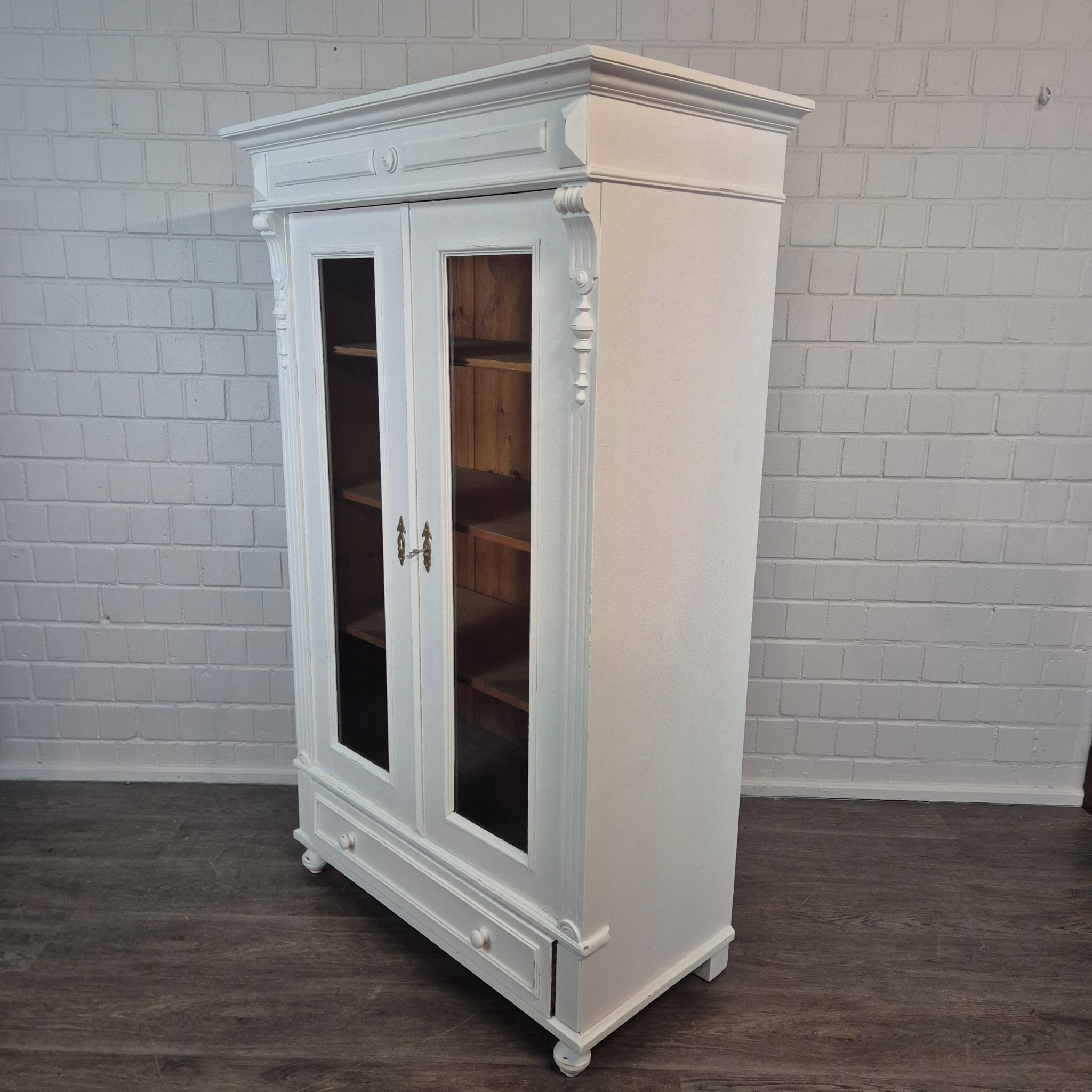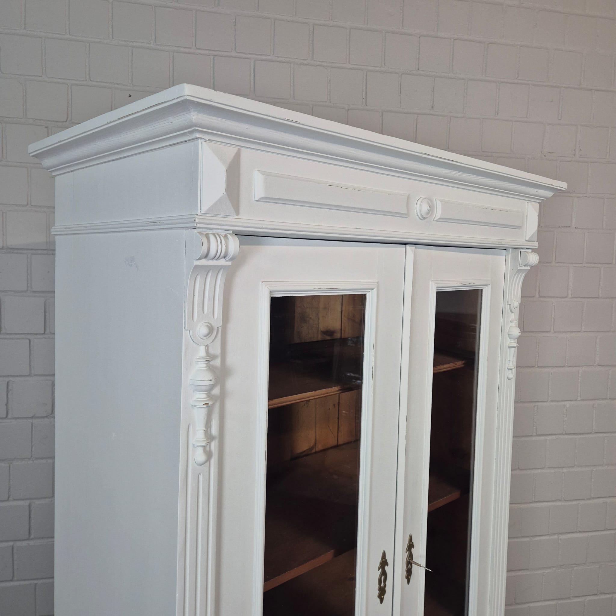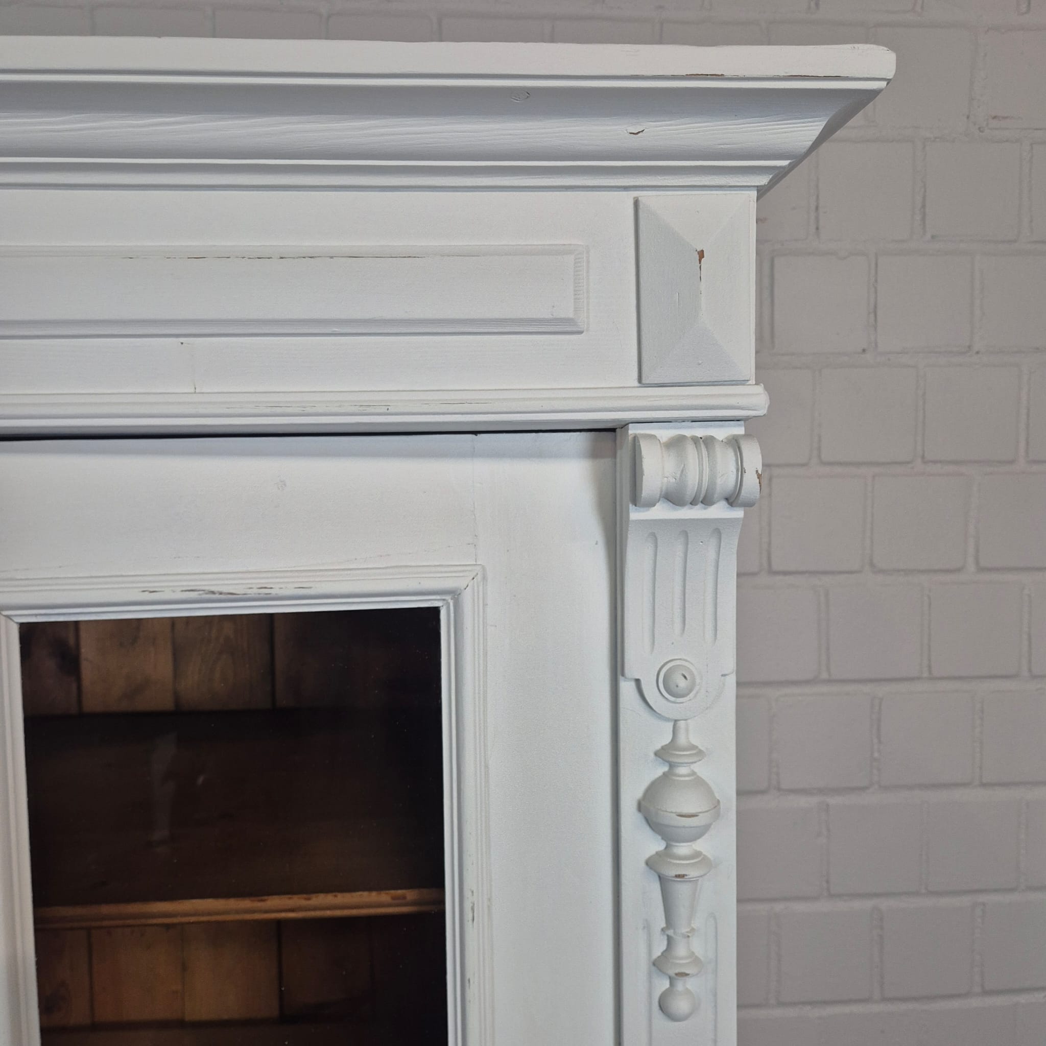 Gründerzeit Wardrobe / Display Cabinet – Solid Pine, ca. 1880