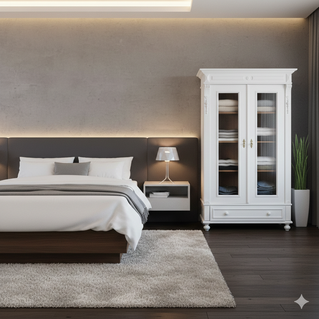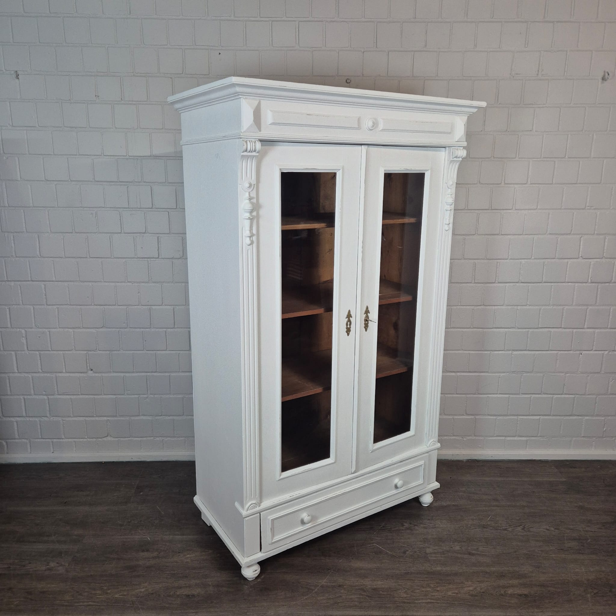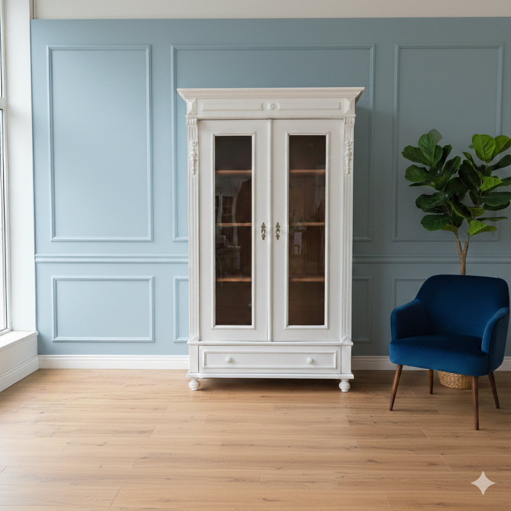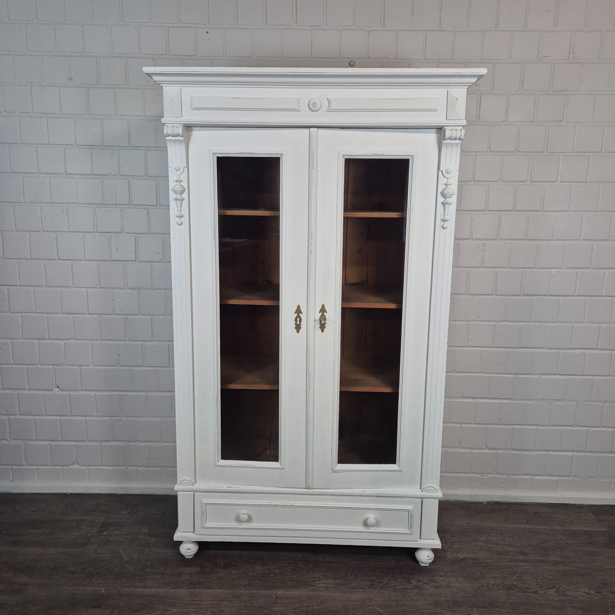 Gründerzeit Wardrobe / Display Cabinet – Solid Pine, ca. 1880
