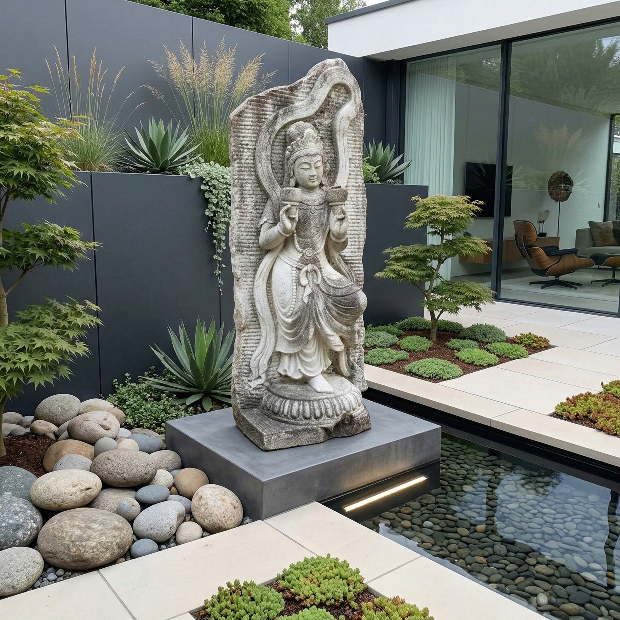 Indian Goddess 1,00 m Statue Granite