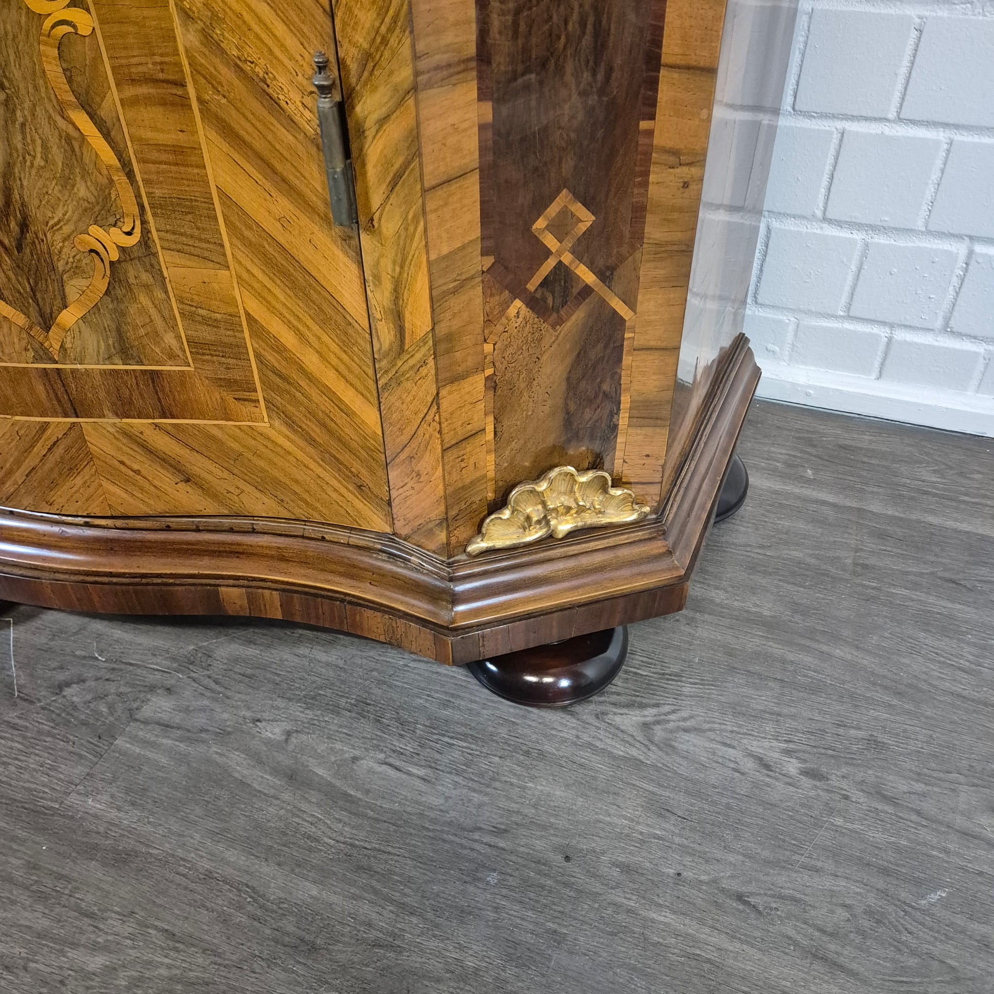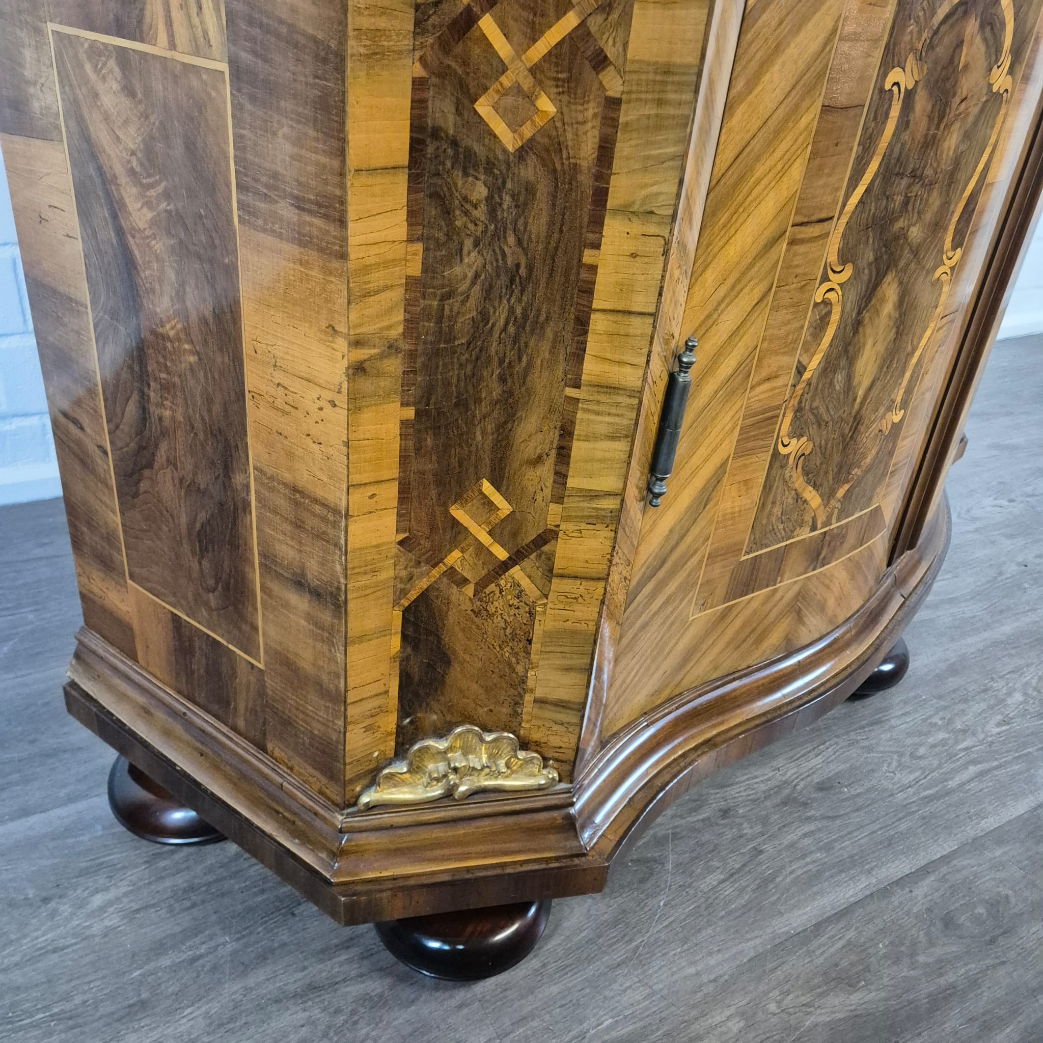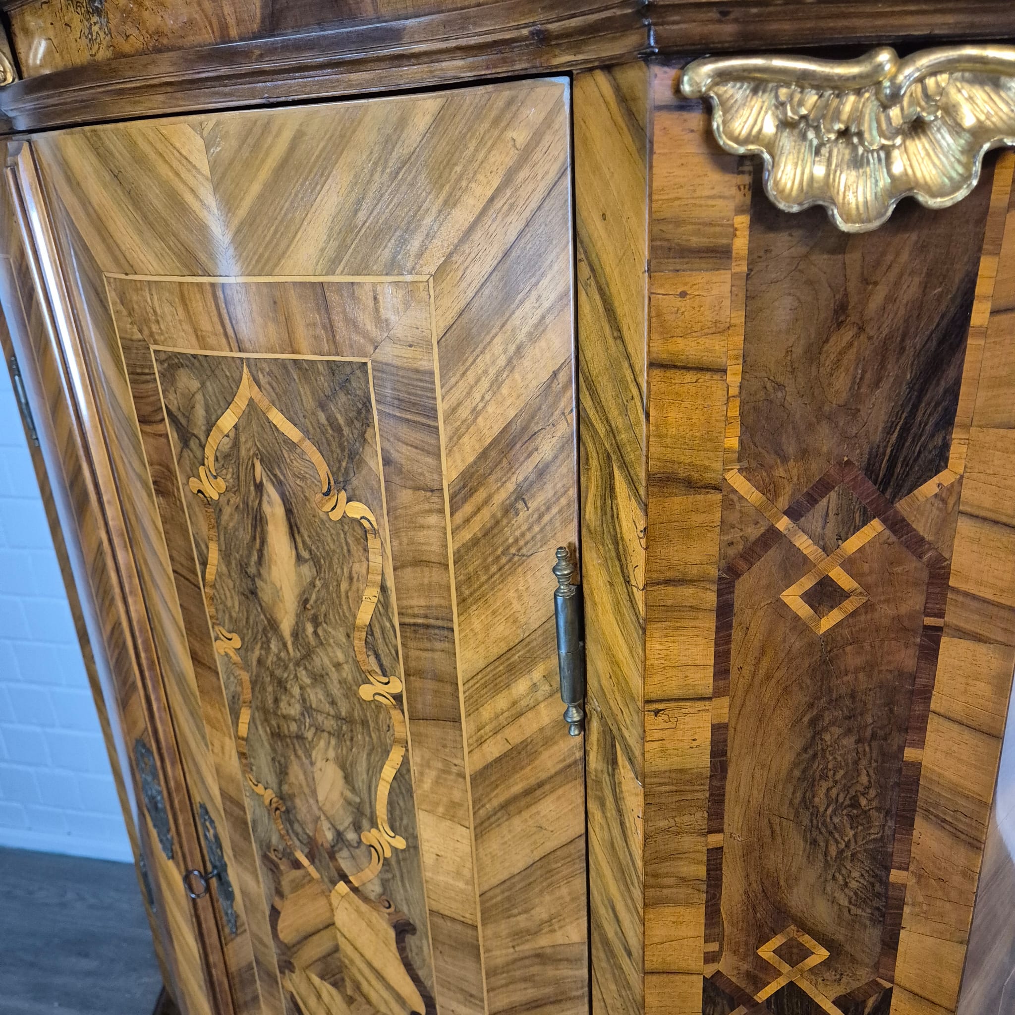Characteristic "bandelwerk" inlay and marquetry