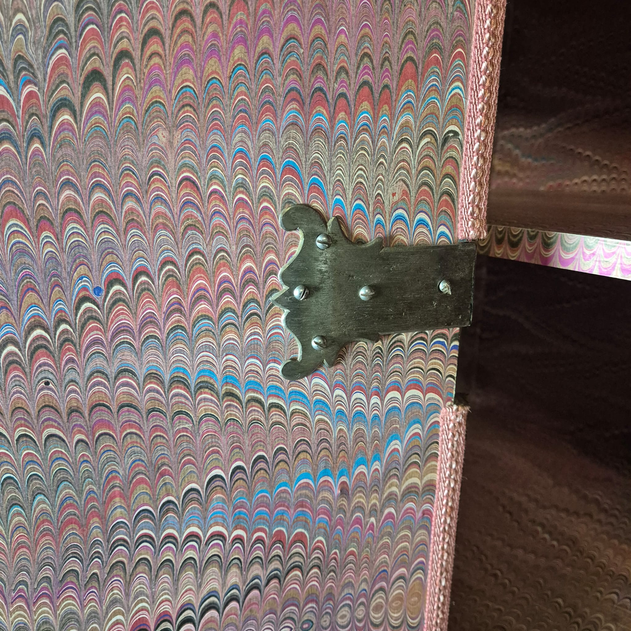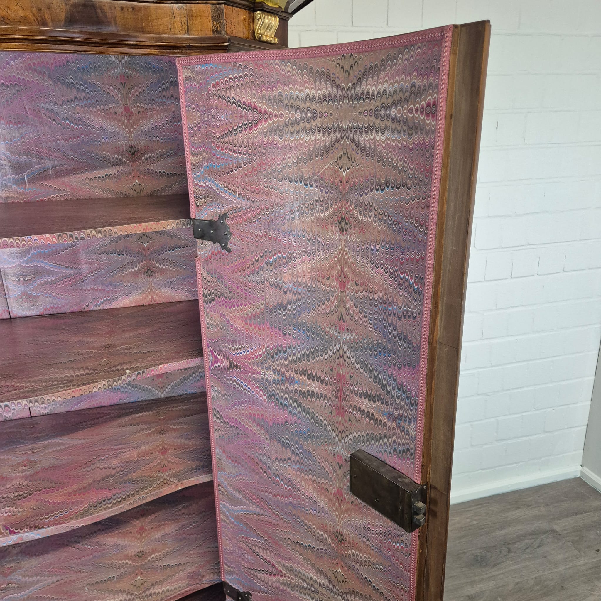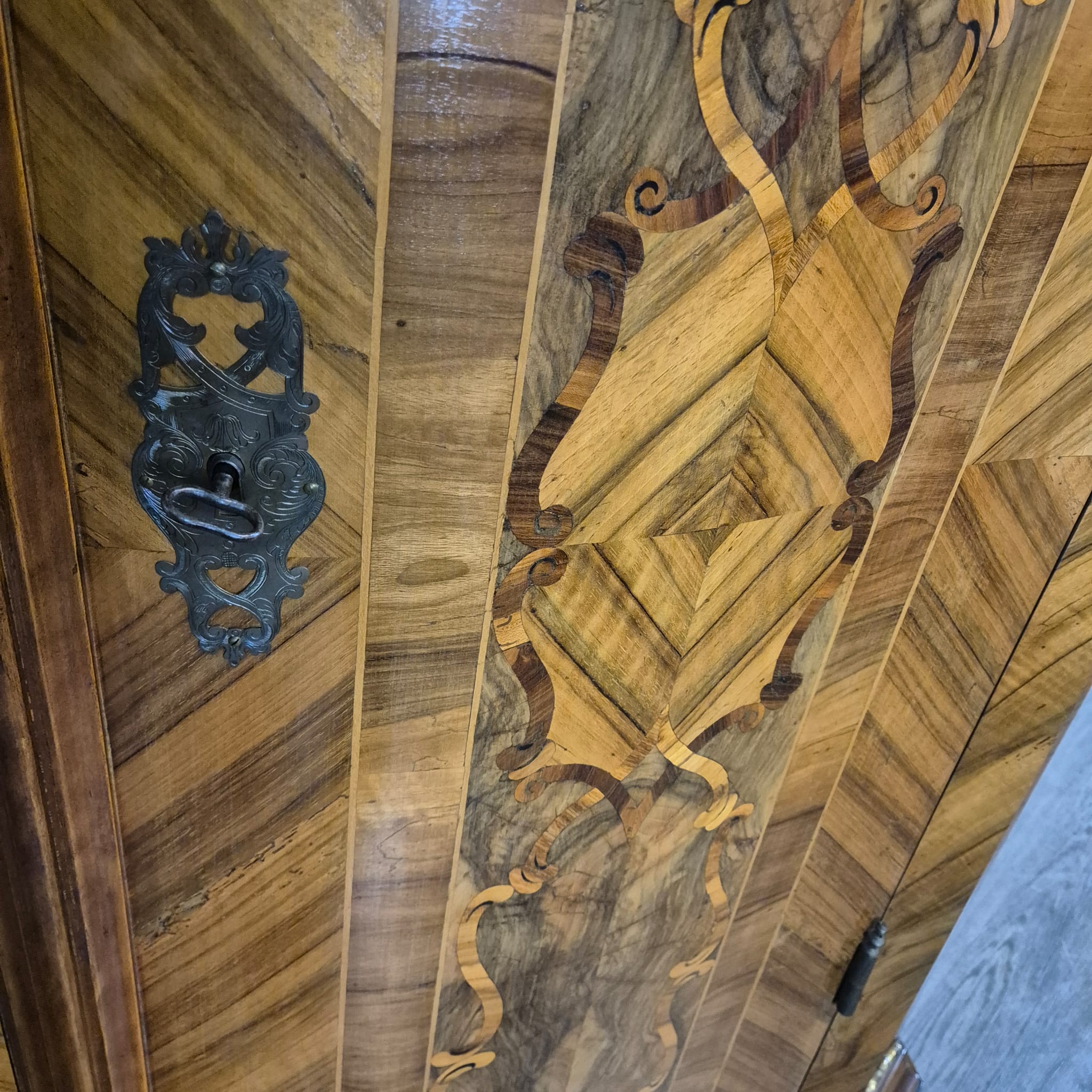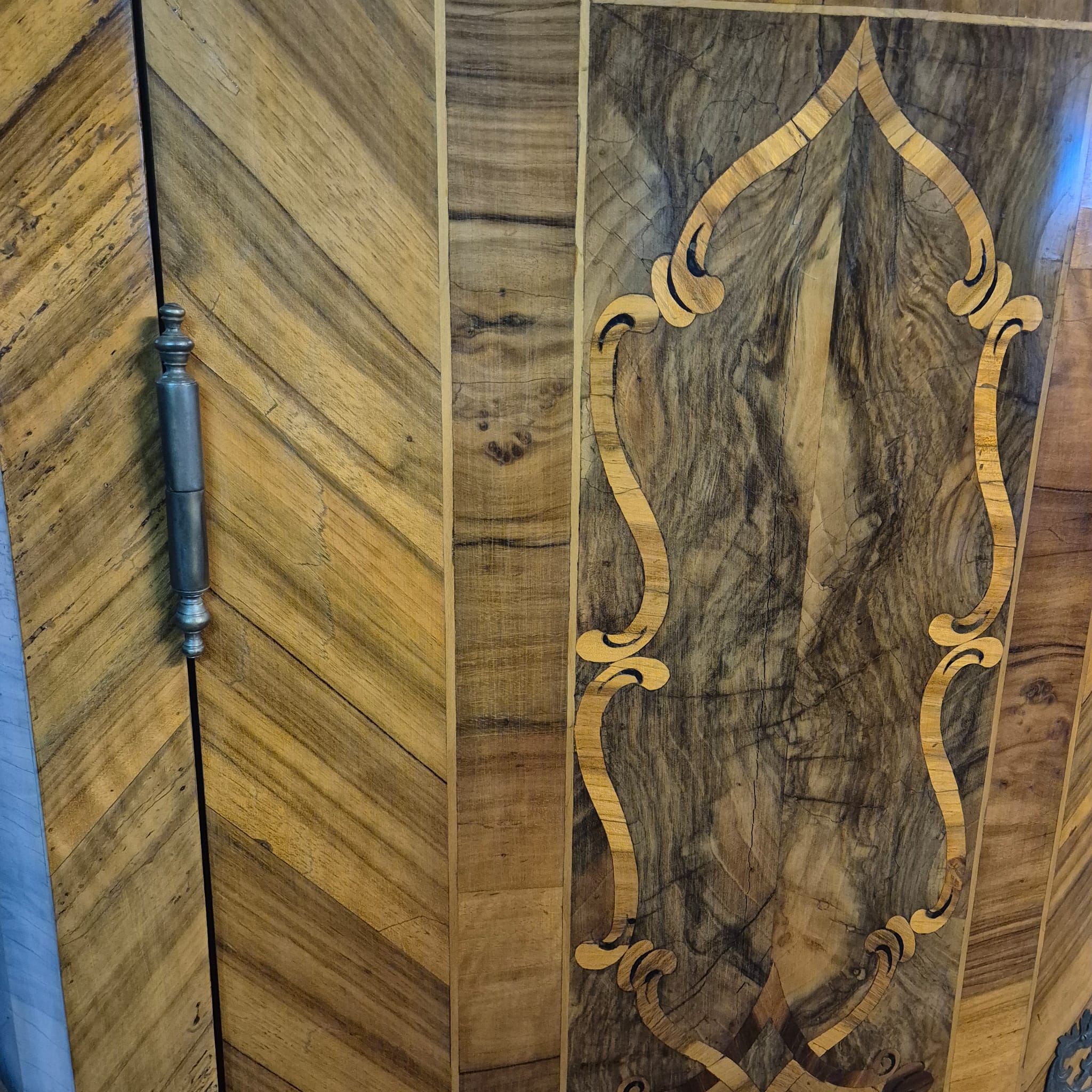 Characteristic "bandelwerk" inlay and marquetry