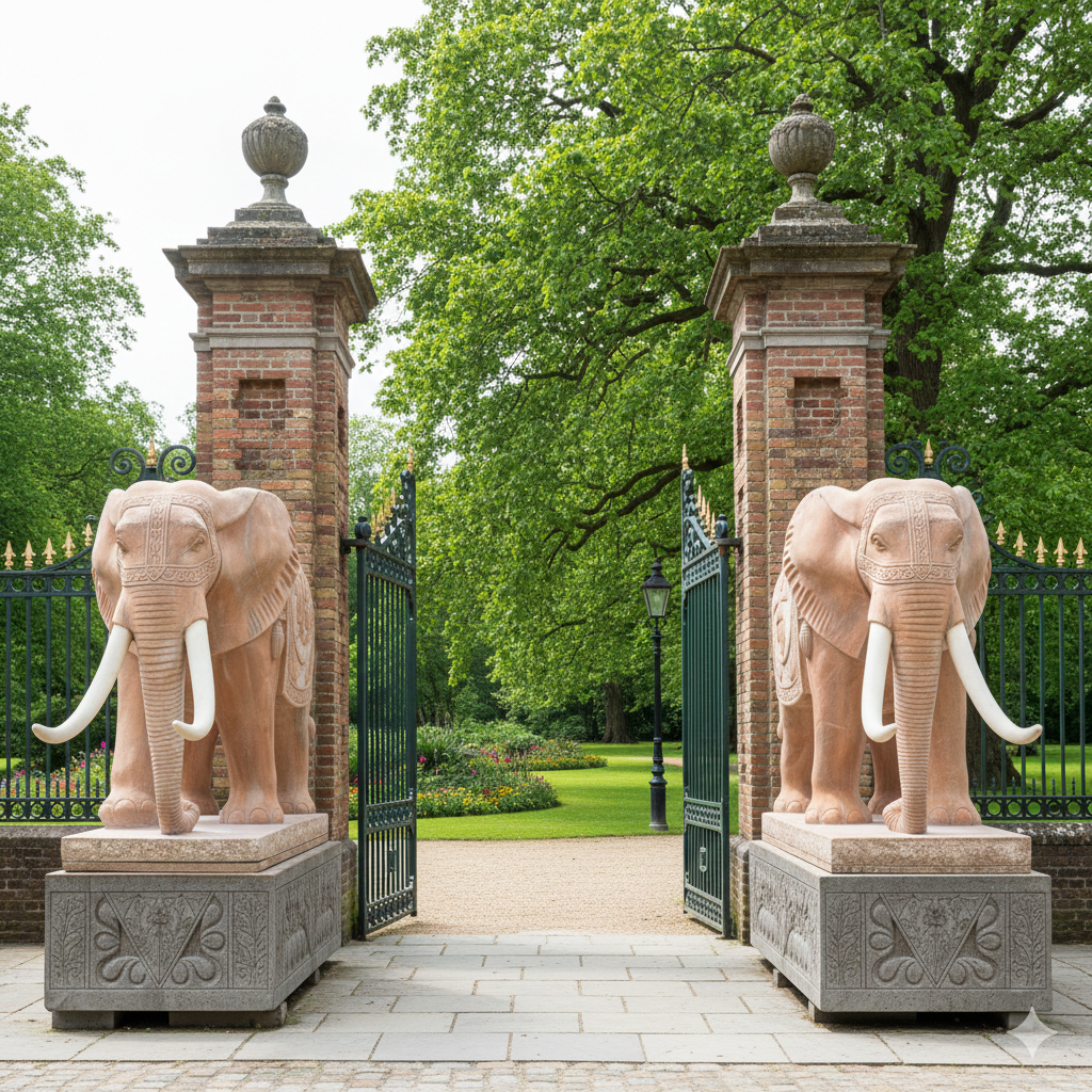 Marmor Statue Elephant on Base 2,10 m Set