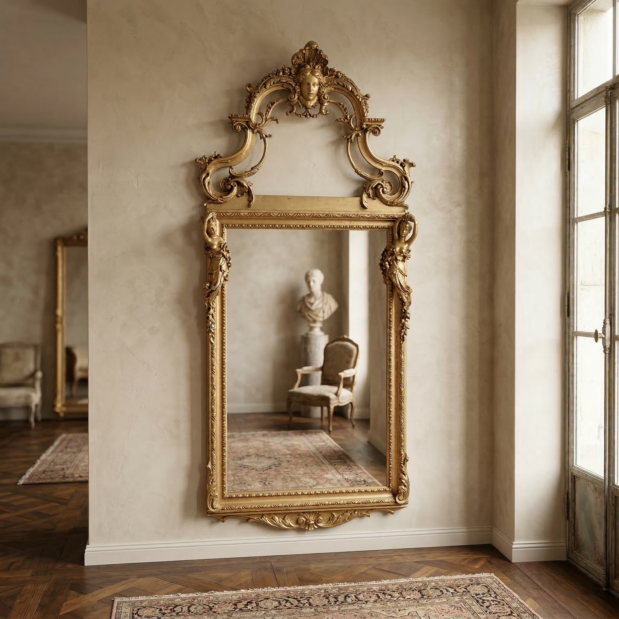 Majestic Baroque Mirror – Gold Lacquered, Solid Frame