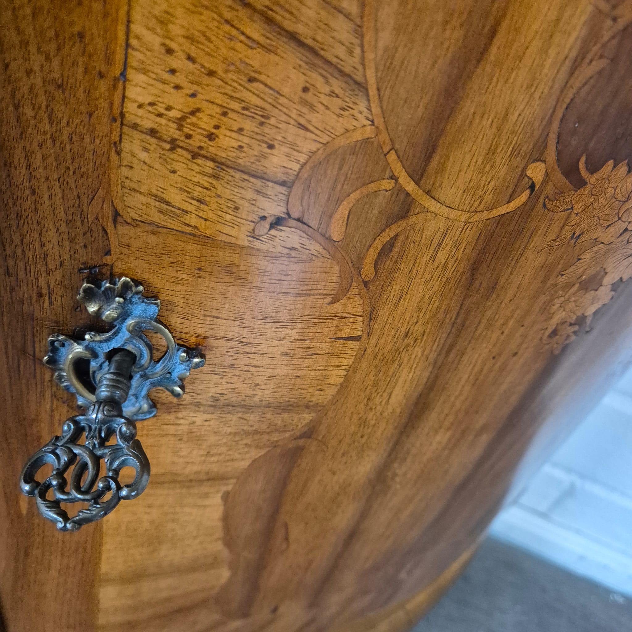 Restored Baroque walnut veneered and lacquered cabinets from circa 1770. The cabinets are in very good condition with minimal signs of use. Price per set: €2199.00.