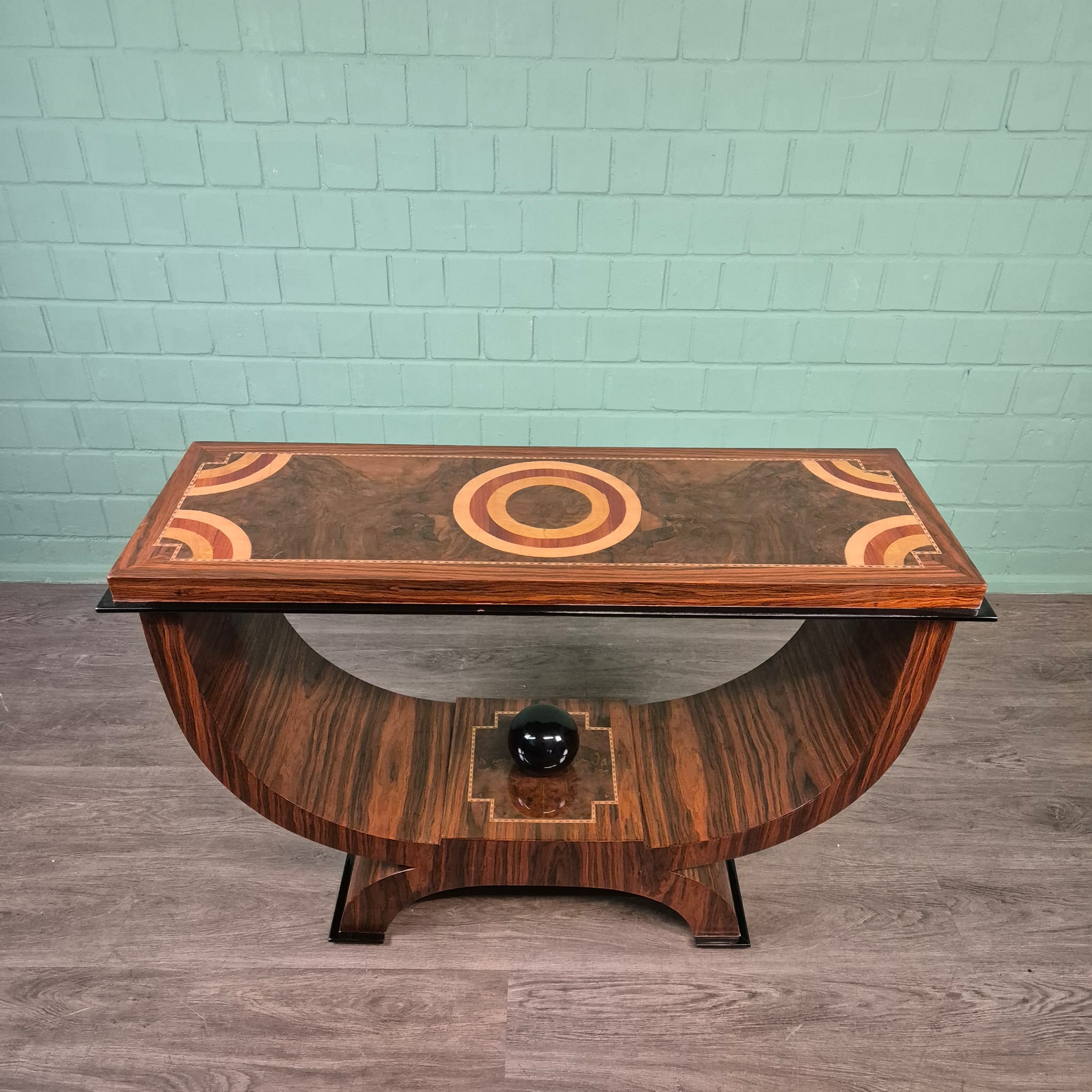 Elegant console table with walnut veneer and marquetry