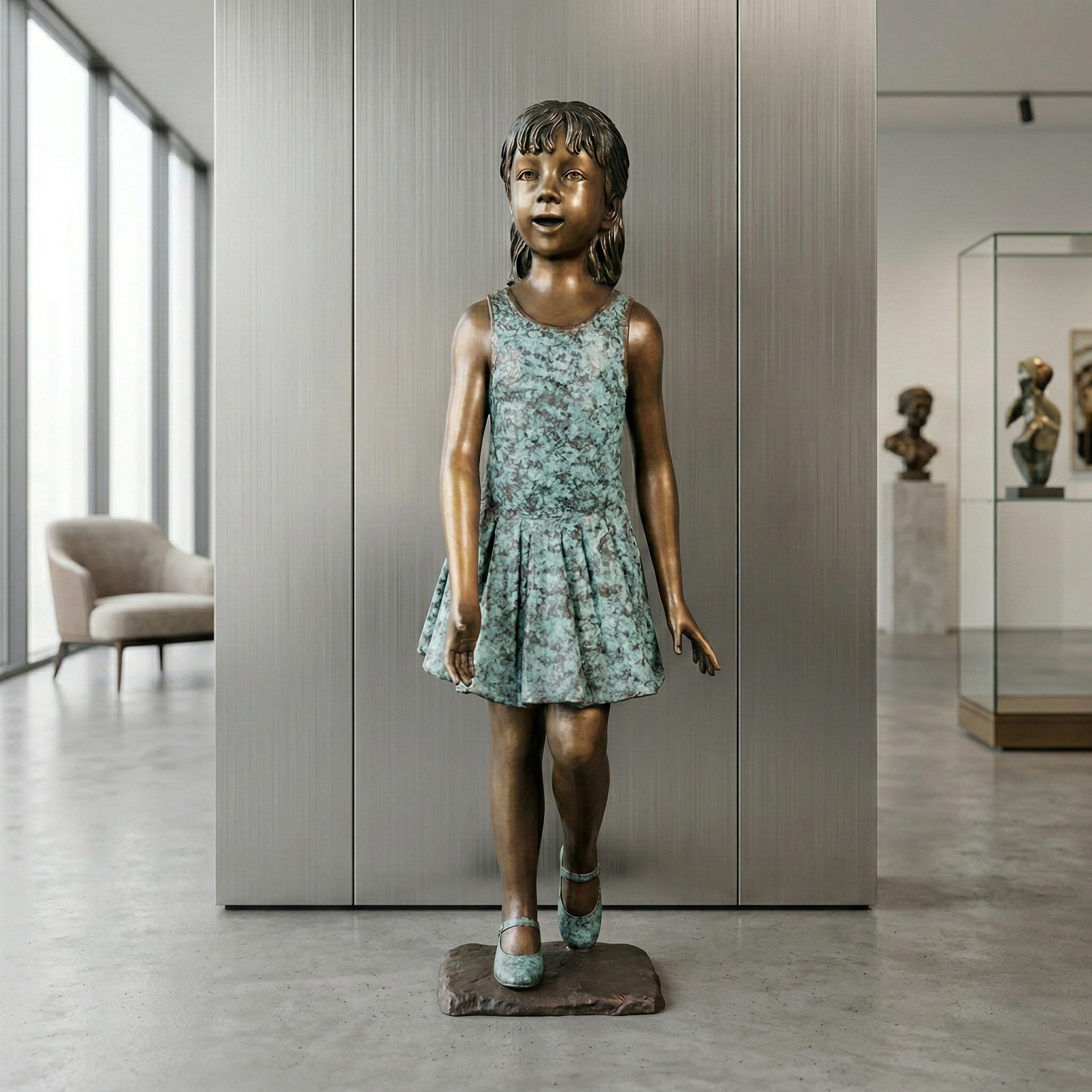 Statue Girl in a Summer Dress Bronze 1,04 m