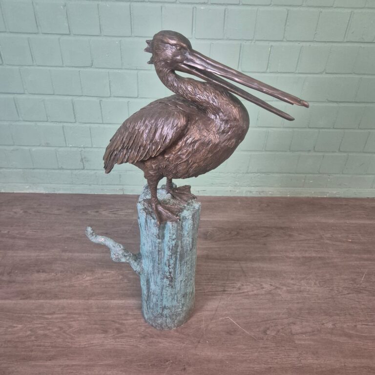 Add a touch of exclusivity and elegance to your home, garden, or business with this impressive, mint-condition bronze statue of a pelican.
