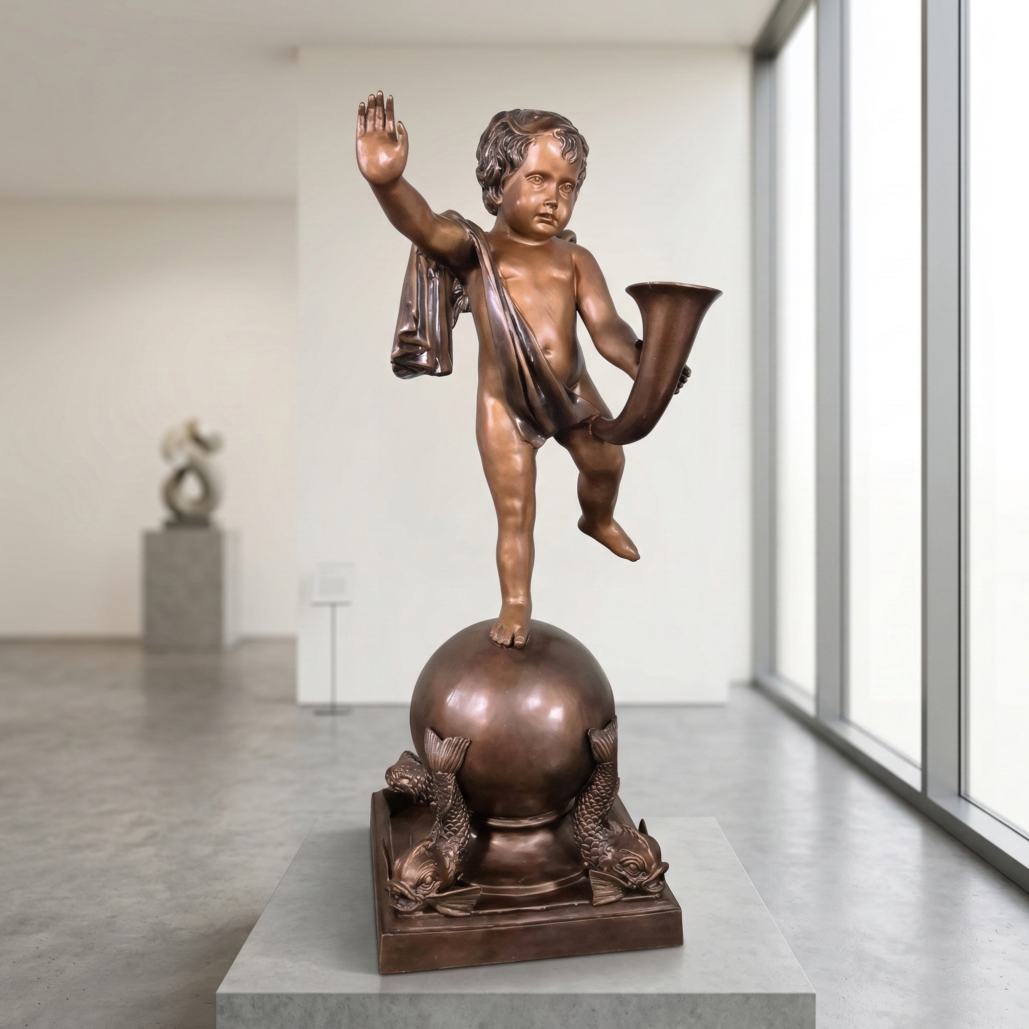 Timeless charm: this beautiful bronze spout is a true masterpiece of art foundry. The cute little boy (putti), balancing on a ball and dispensing water with a shell, is a timeless classic. The detailed design and high-quality patina give the spear an antique charm.