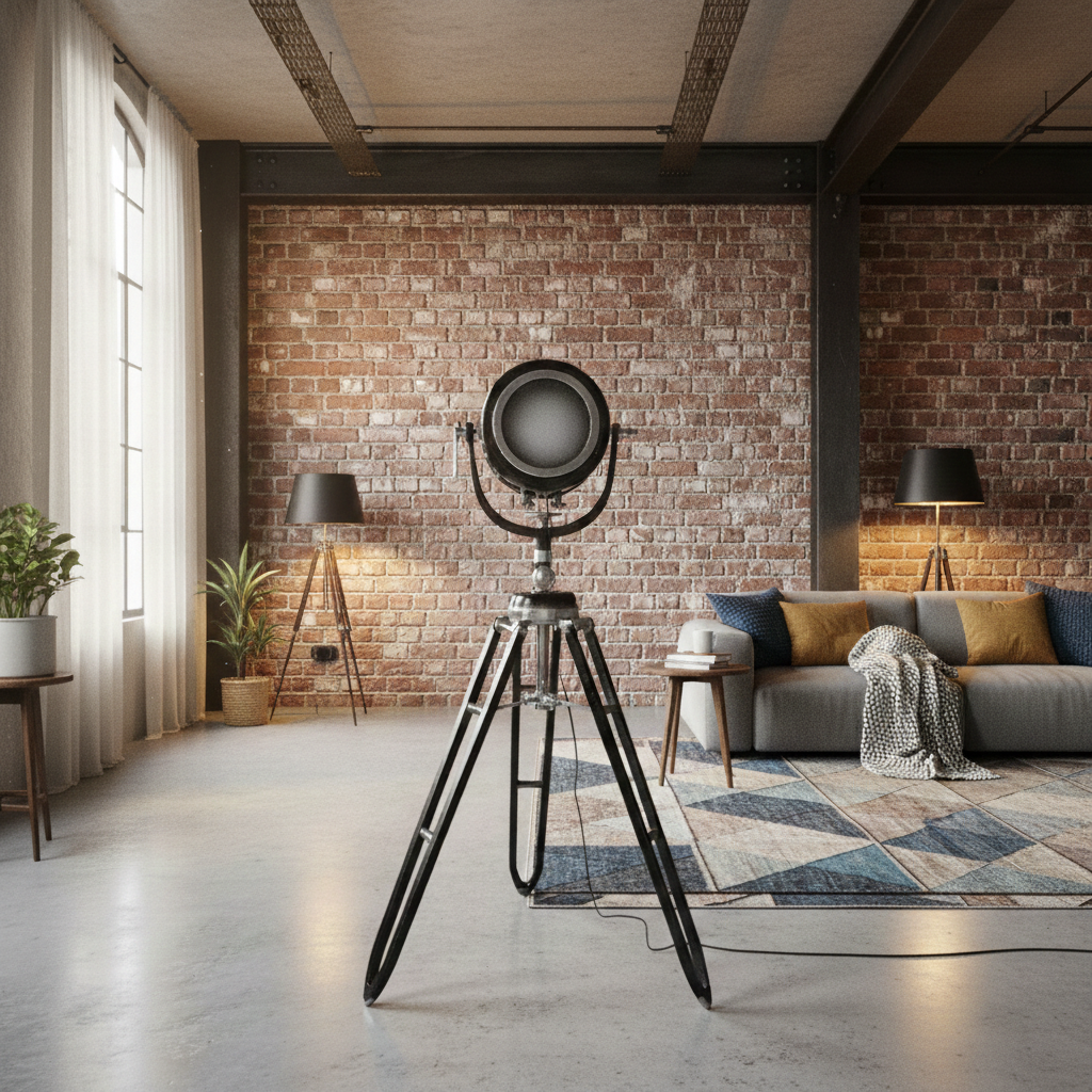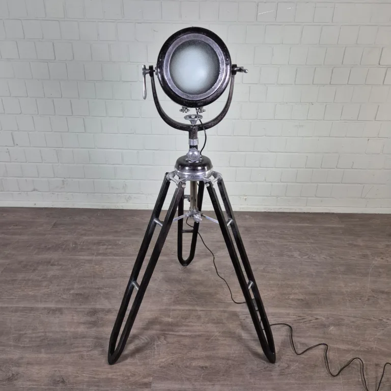 Tripod lamp made of metal in a nostalgic look.
