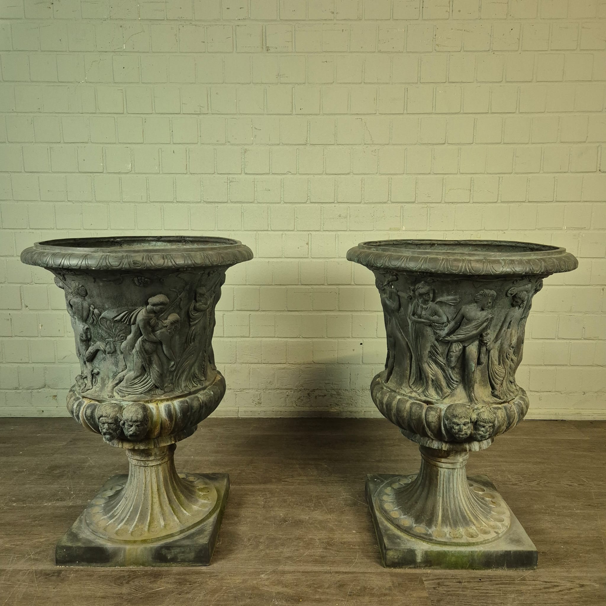Add a touch of classic elegance to your garden, patio or interior with this beautiful set of two used bronze vases. With an impressive height of 90 cm each, these vases are real eye-catchers and testify to timeless beauty.