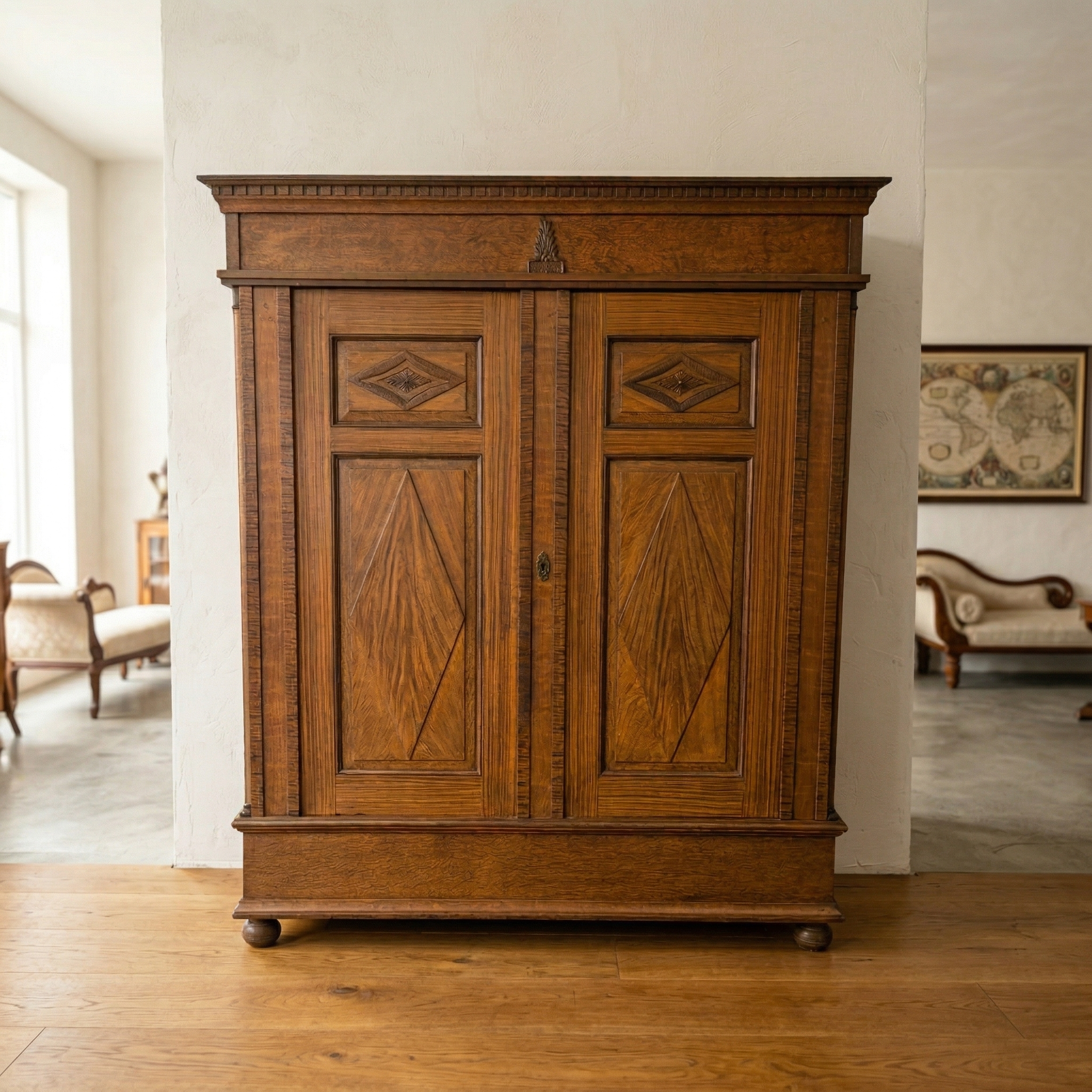 Wardrobe Linen Cupboard Neo-Renaissance 1870 Oak